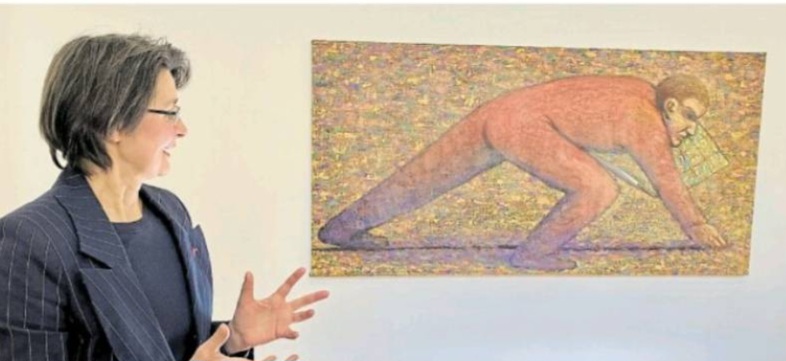 Vernissage Haus Coburg, Leriterin Frau Dr. Felix mit der Arbei "Landvermesser"